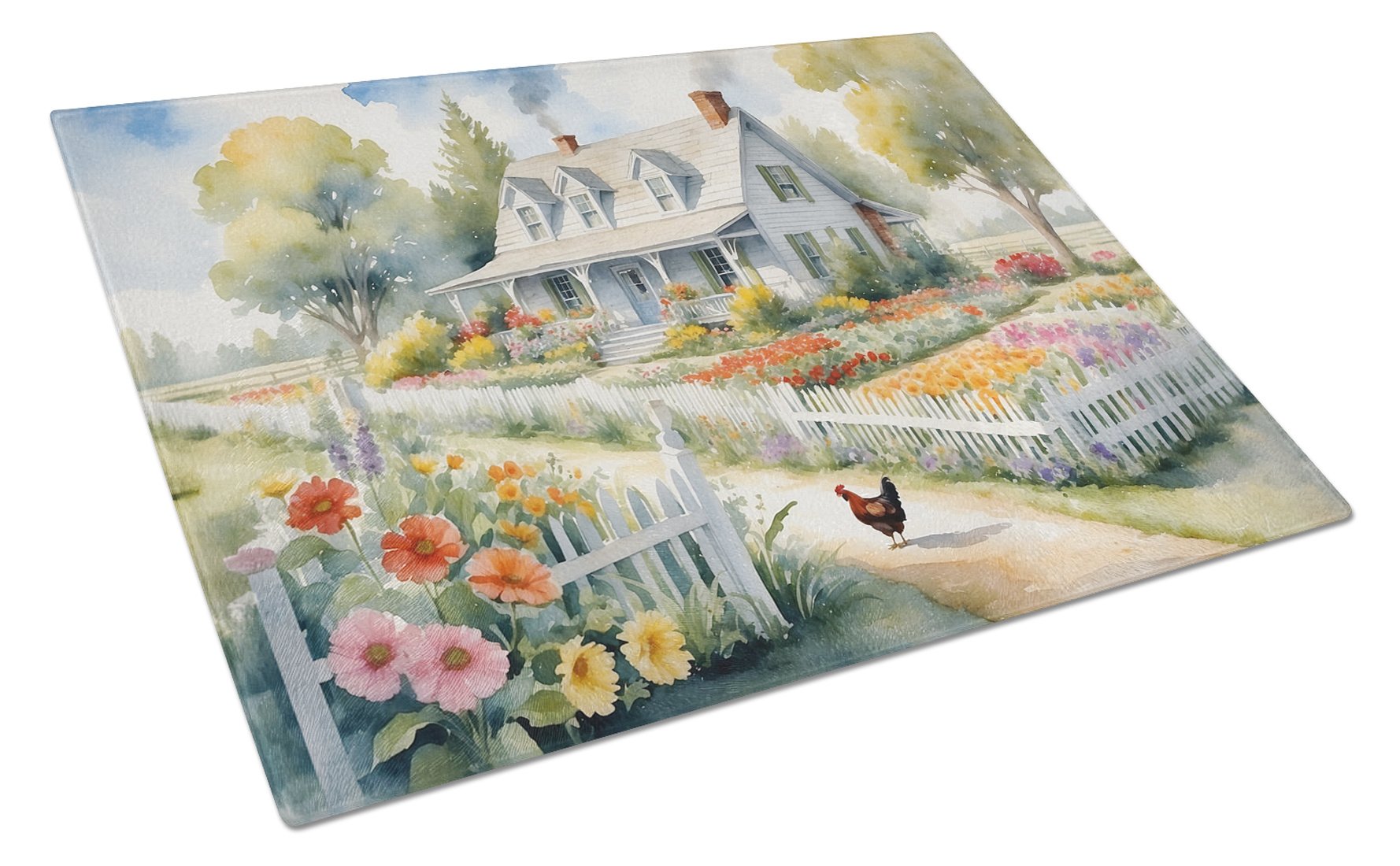 Home > Chicken Farmhouse Garden Glass Cutting Board Decorative Tempered Glass Kitchen Cutting and Serving Board Large Size Chopping Board