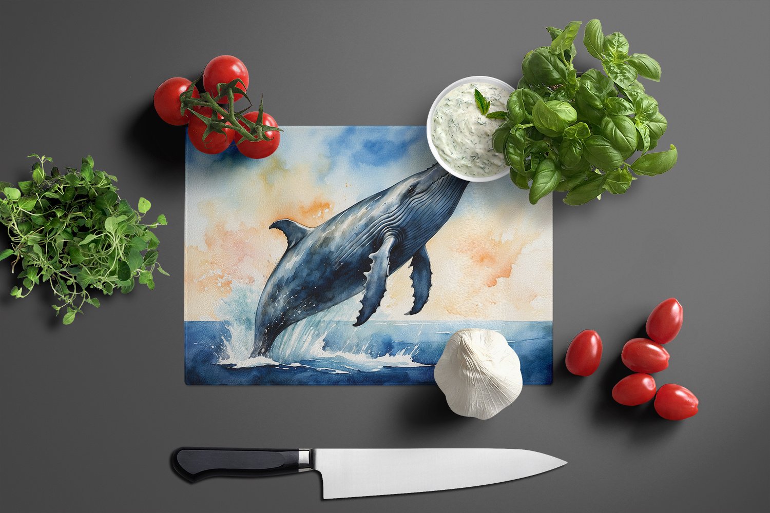 Glass Cutting Board featuring breed specific Humpback Whale artwork. Introduce your kitchen to the vibrant, large Decorative Glass Cutting Board from Caroline's Treasures. Crafted from resilient tempered glass, this board is not only a utilitarian necessity but also a colorful art piece. With its generous dimensions of 15 inches in height and 12 inches in length, it offers ample space for all your cutting needs. Every piece showcases captivating artwork from distinguished artists, bringing an aesthetic edge to your kitchen. Beyond its attractive design, this cutting board ensures your countertop stays pristine and unscathed, owing to its heat-resistant properties. Engineered with user convenience in mind, it features non-skid feet for stability, and rounded corners for additional safety. Its robust construction renders it virtually unbreakable, guaranteeing longevity. The board comes with protective feet bumpers, maintaining its position during use. This product is recommended to be hand washed only. Proudly printed and assembled in the United States, this cutting board exemplifies superior craftsmanship. With Caroline's Treasures' Decorative Glass Cutting Board, you're investing in a blend of functionality and artistic flair.