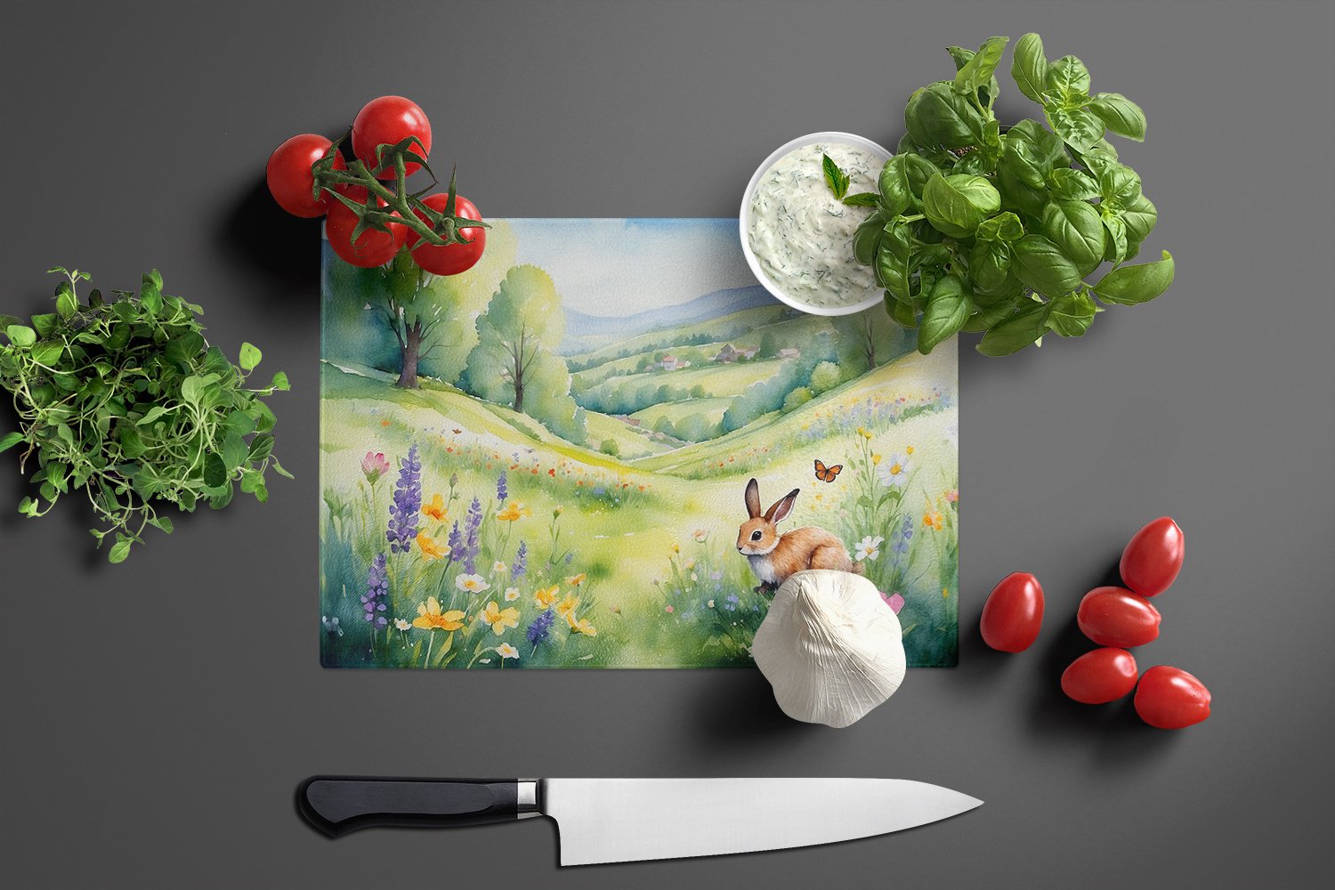 Home > Rabbit Springtime Meadow Glass Cutting Board Decorative Tempered Glass Kitchen Cutting and Serving Board Large Size Chopping Board