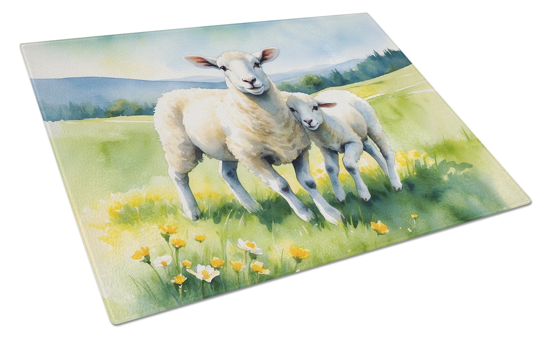 Home > Springtime Lambs Glass Cutting Board Decorative Tempered Glass Kitchen Cutting and Serving Board Large Size Chopping Board