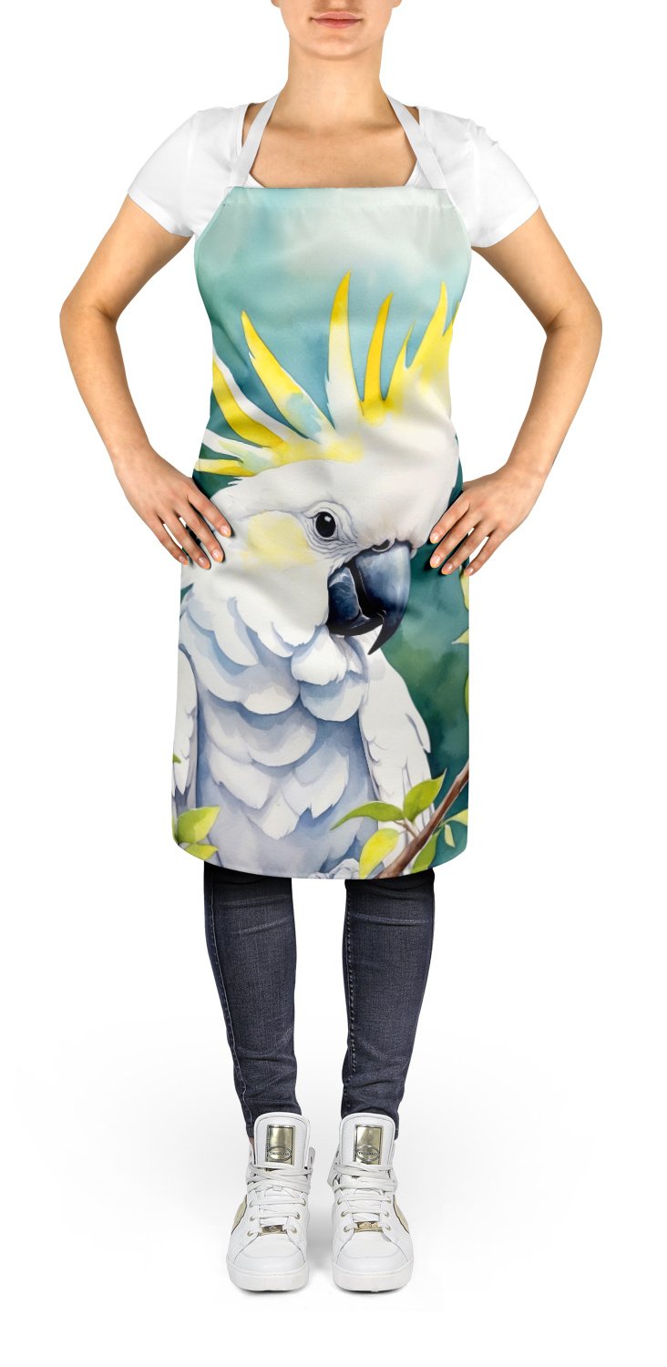 Apron featuring breed specific Sulphurcrested Cockatoo artwork. Elevate your cooking, baking, and grilling experiences with our versatile Kitchen or BBQ Apron. This Bib Style apron isn't just limited to culinary activities - it also serves as an excellent baking apron, artist apron, server apron, gardening apron, or even a dog grooming apron. The apron showcases vibrant full-color artwork contributed by one of our talented artists, bringing a dash of style to your daily tasks. With dimensions of approximately 27"W x 30"H, it provides ample coverage to protect your clothing from spills and splashes. Our apron is meticulously crafted from 100% Ultra Spun Polyester, known for its durability and lightweight nature. The apron comes with white tie straps, ensuring a comfortable and adjustable fit for all. It's a perfect choice for kitchen apron enthusiasts, whether you are a woman or a man. Designed for easy maintenance, this apron is fully machine washable. The quick-drying polyester material actively reduces staining, keeping your apron looking fresh and new for longer. Our beautifully designed apron isn't just a functional kitchen accessory - it's a fashion statement in the culinary world!